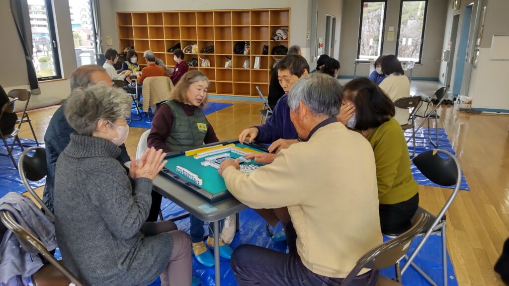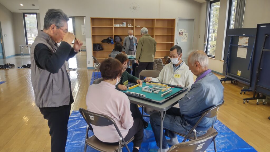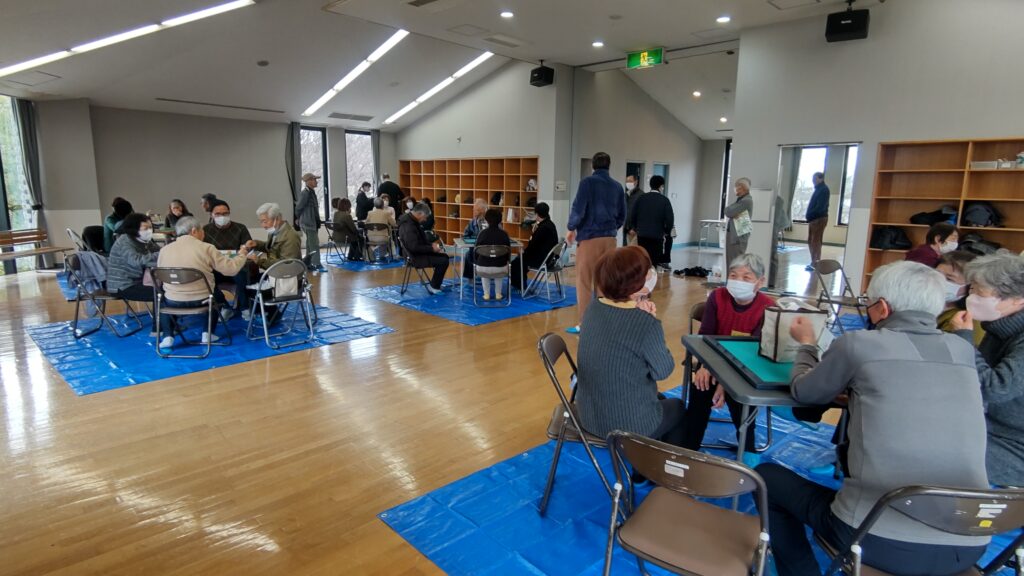 2月26日(木)高坂丘陵市民活動センターのリフレッシュホールにて「健康マージャン」が開催されました。当日は6テーブルに計32名が参加しました。本事業は、昨年9月号の「広報ひがしまつやま」への掲載後、多方面から問い合わせが寄せられたことを受け、市社会福祉協議会が体験会を実施しています。会場では5名のボランティアが、初心者に対してルールや対局方法の指導にあたりました。参加者からは、次回の開催予定に関する質問が寄せられるなど、継続的な開催への関心の高さがうかがわれました。