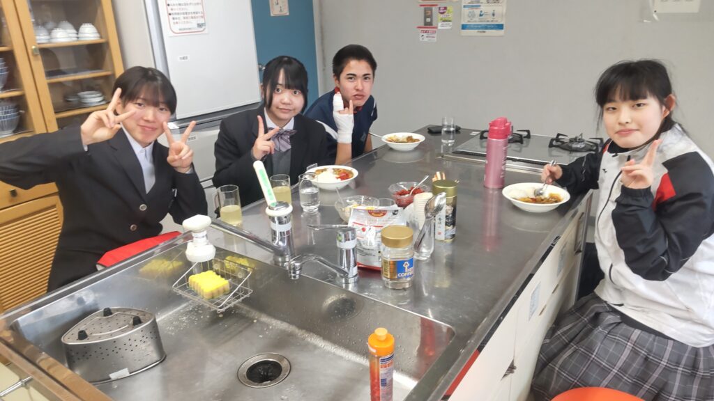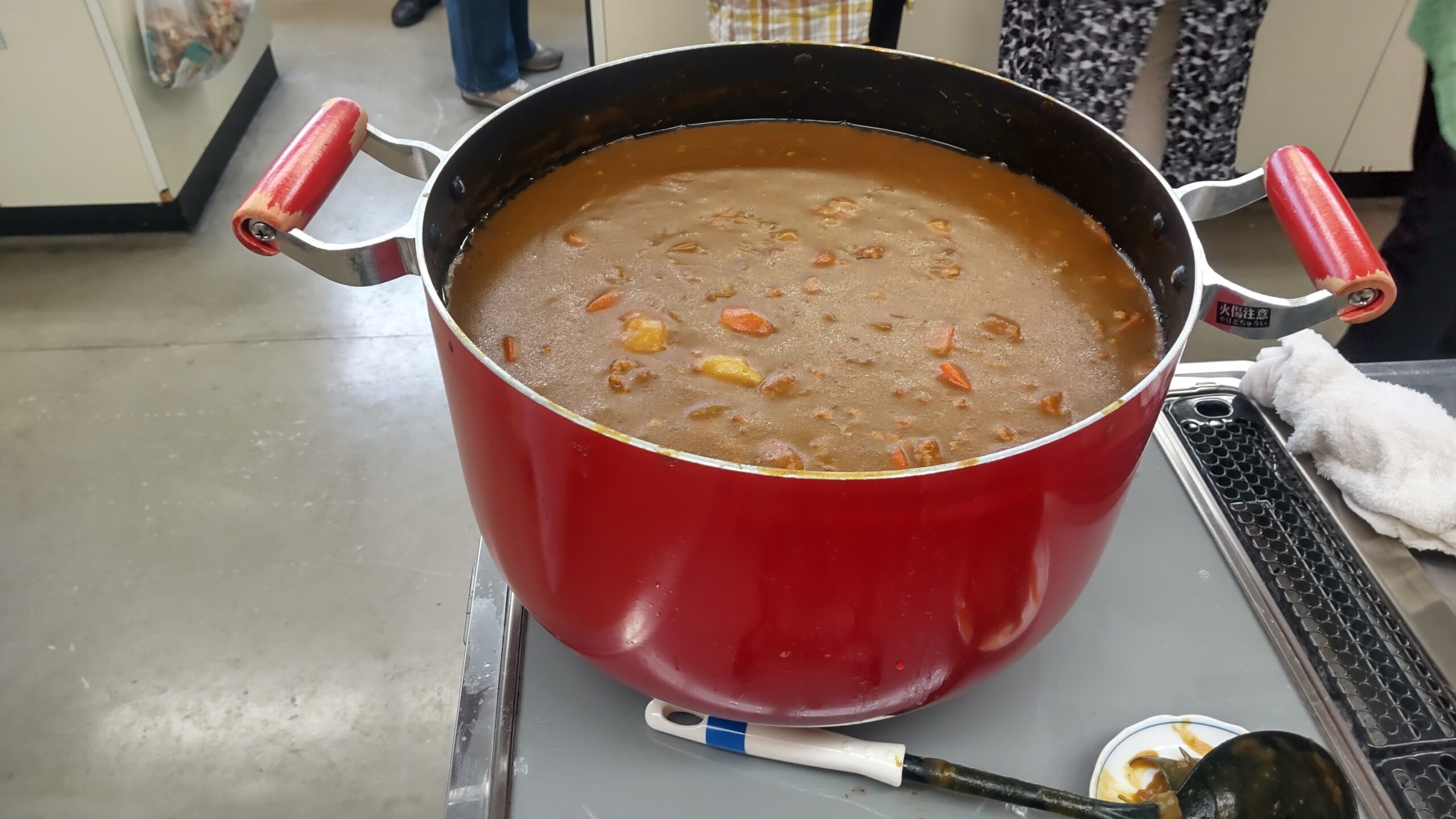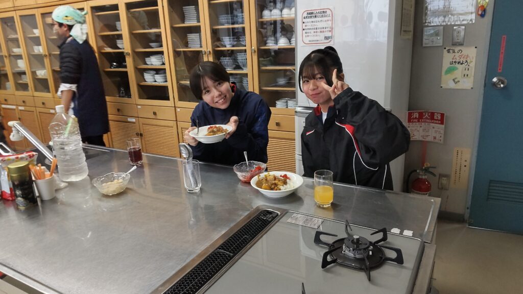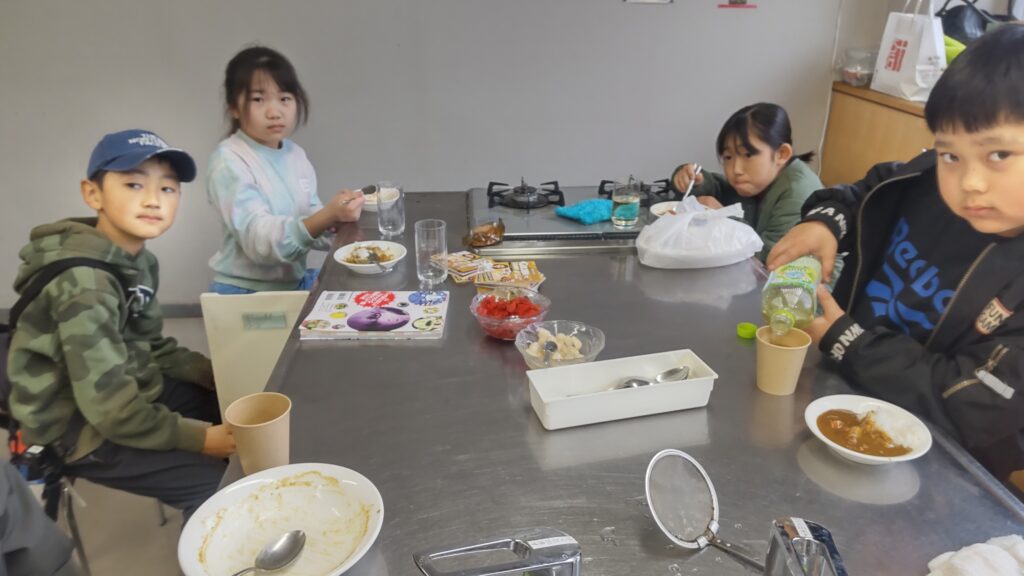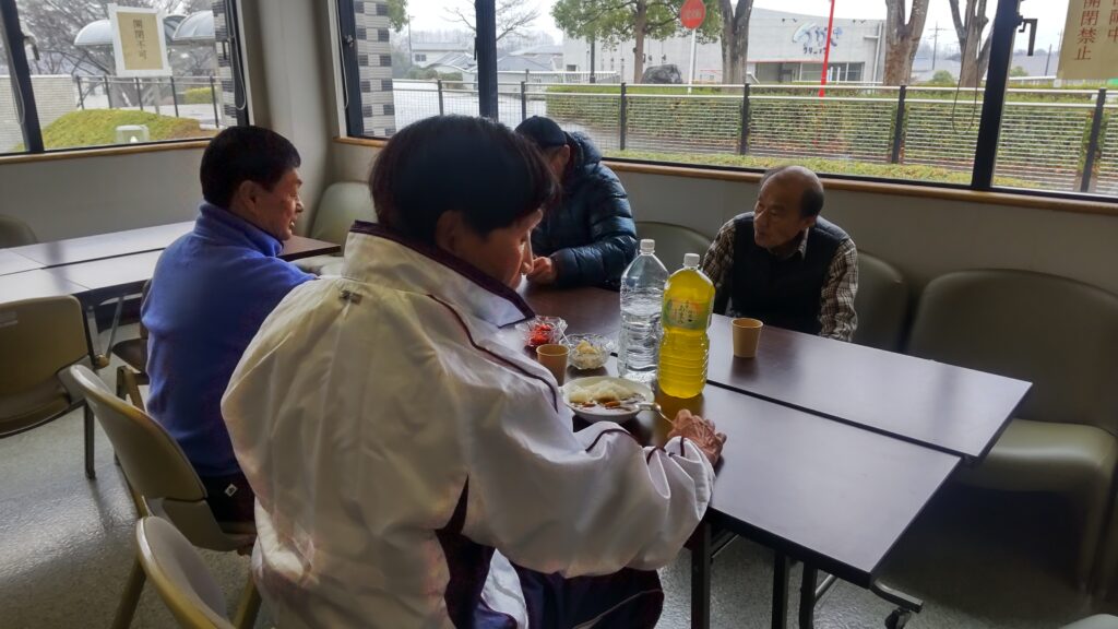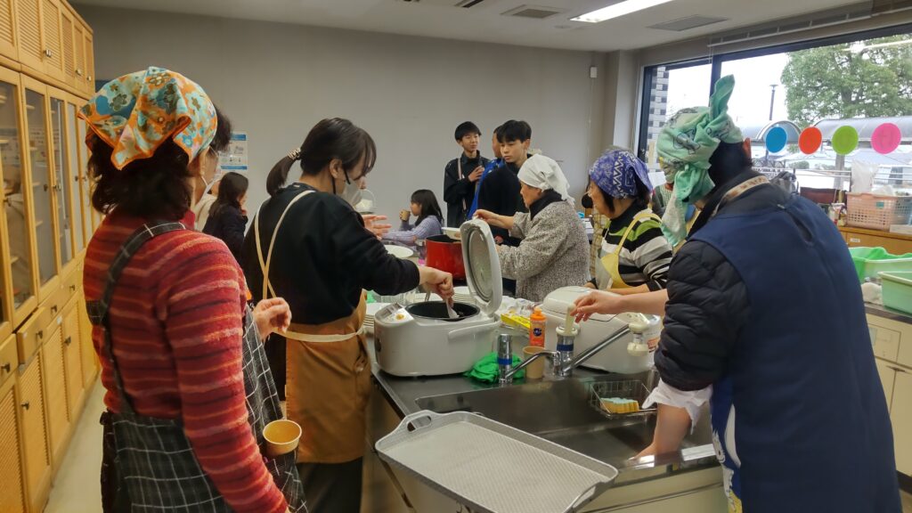 12月24日(水)、雨天のクリスマスイブとなり、今日はこの冬で最も寒い一日となりました。終業式を終えた桜山小学校および白山中学校の児童・生徒が大勢訪れました。「夕やけひろば」の開催にあたり、エスビー食品株式会社からカレールー200食分の協賛を頂き、社会福祉協議会およびボランティアスタッフ8名の協力により、特選「ゴールデンカレー」がふるまわれました。持ち帰りを希望する方や、その場でカレーを食べた方の中には、追加でおかわりをする人が多く見られました。