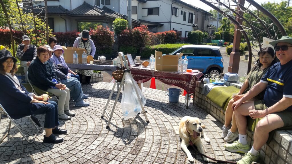 2026年4月26日(日)、ひきのみちアーチ花壇にて「アーチ花壇カフェ」が開催されました。旗立台地区へ回覧板や掲示板による事前告知、ひきのみち遊歩道利用される皆様へのお知らせで40名来場しました。参加者は花壇の花を観賞しながら、提供されたブレンドコーヒーを手に交流のひと時を過ごしました。
