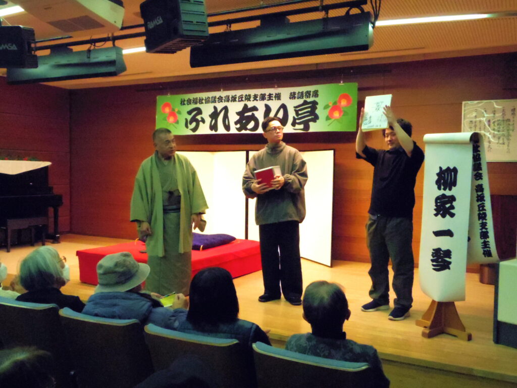 12月5日 年末恒例の「ふれあい寄席」が高坂丘陵市民活動センター視聴覚ホールで開催されました。当日は約100席の客席は満席、丘陵地区や高坂地区の寄席愛好者が集まり、毎年この催しの高座に匠の軽妙な噺しを楽しんでいました。出演は真打ち 栁家一琴師匠、2枚目 春風亭与いち、前座 桃月庵ぼんぼり のお三方。午后1時30分開場、2時開演 休憩を挟んで4時終演。高座が終わると出演者のサイン色紙の配布イベントを経て終演。