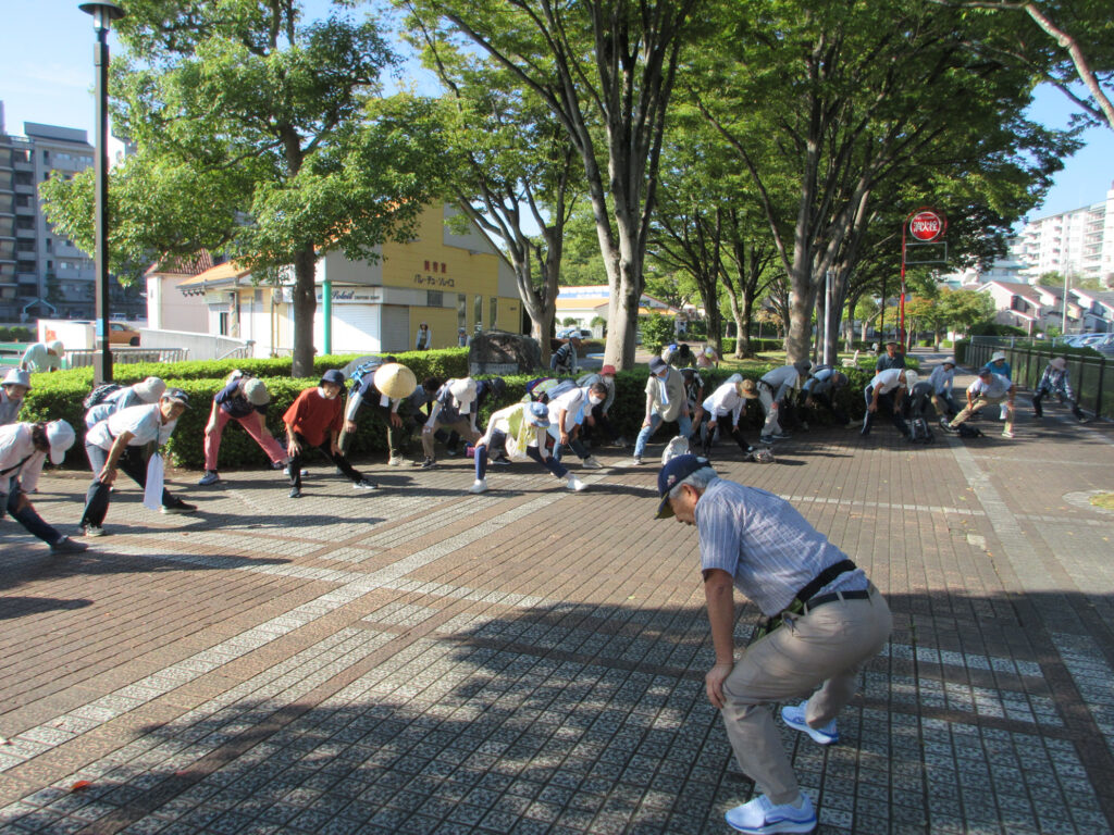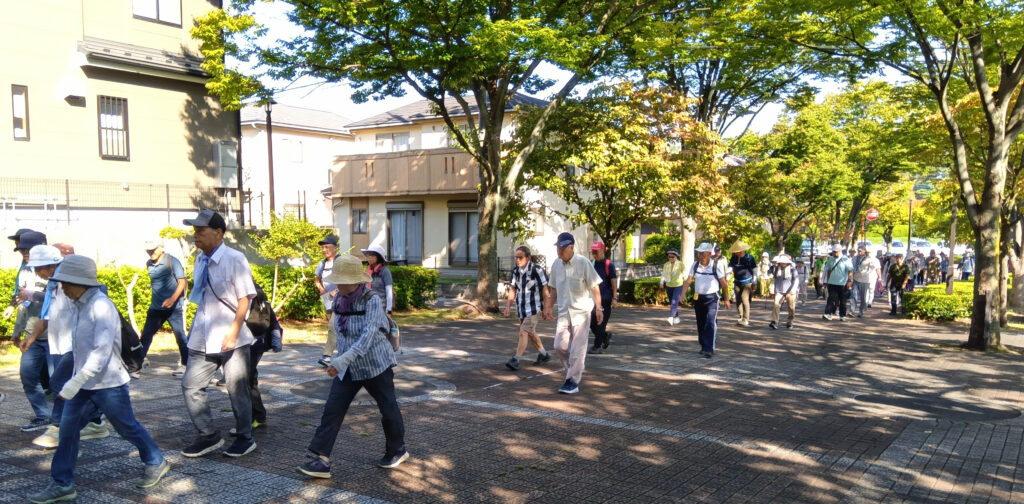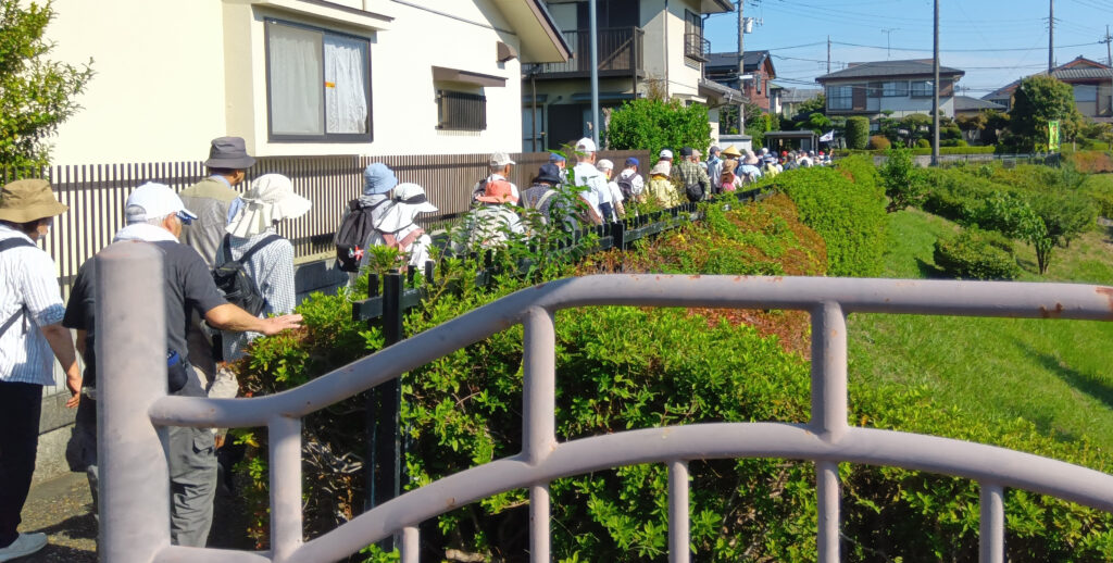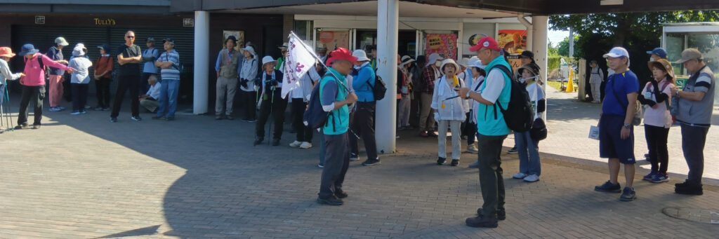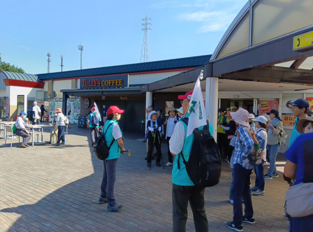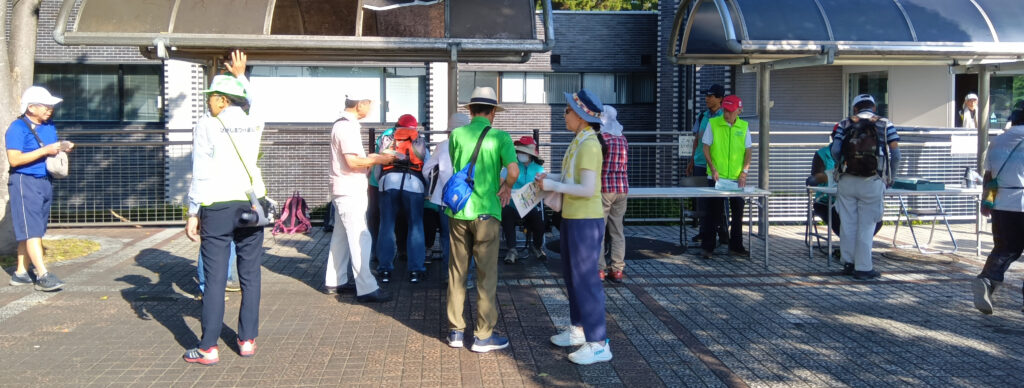 月例ウォーキング「高坂サービスエリアコース」 2025年9月26日 最終更新日時 : 2025年10月1日 ADM ちょっと涼しくなった彼岸過ぎ、高坂SAを中間地点にウォーキングイベントが久々に開催された。 110名の参加者がそれぞれ受付を行った。 入念なストレッチの準備運動 約5キロのコース