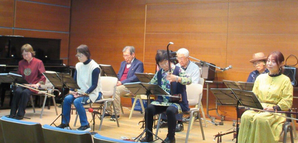 黒澤先生のご指導の下、二胡大好きな仲間が集まり、楽しく練習しています。年に一度の定期演奏会・ソロ演奏会や自治会サロンのボランティア演奏会を行っています。会員募集中ですのでお気軽にご連絡<ださい。