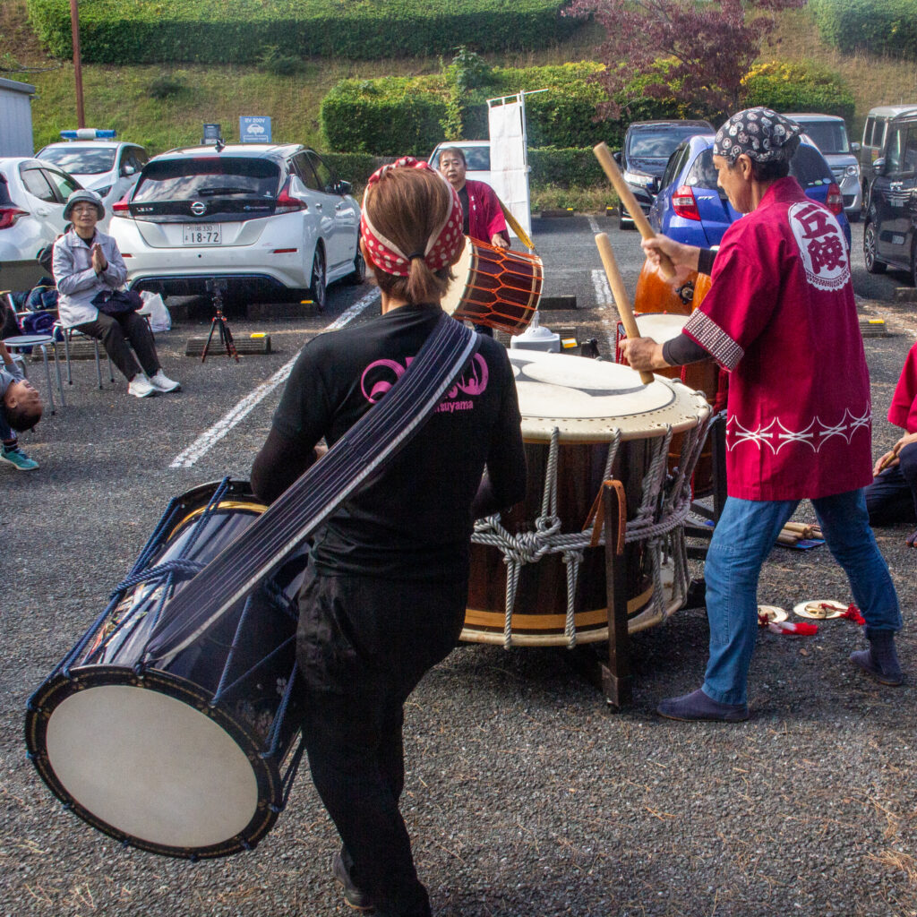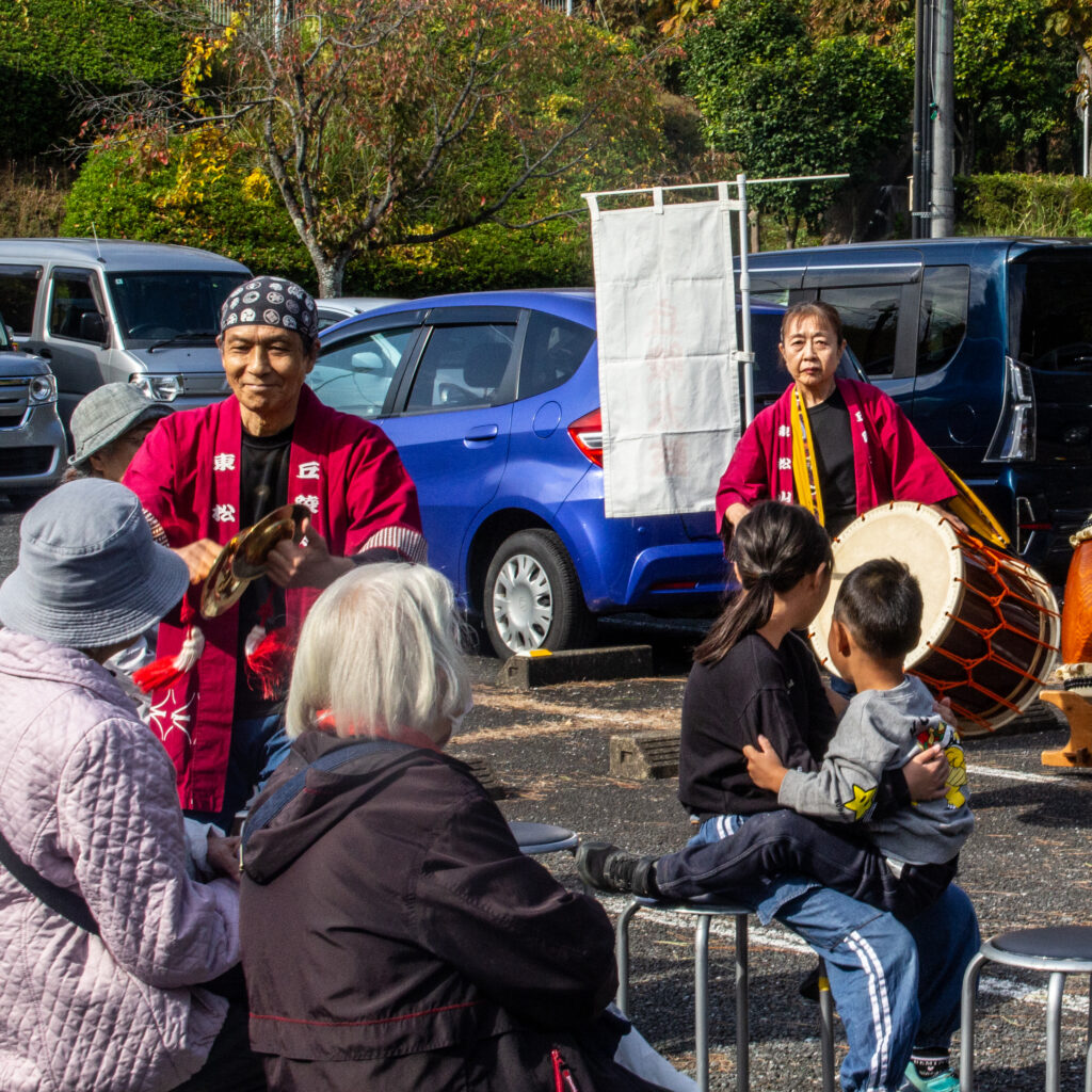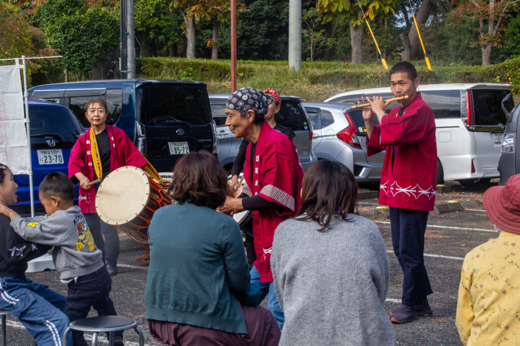 毎年夏の丘陵地区夏祭り、スリーデーマーチ、近隣地域お祭り、福祉施設のイベント等で演奏を行っています。丘陵太鼓では常時メンバーを募集しています。太鼓、笛、鉦などに興味がある方は連絡下さい(見学も大歓迎です)。