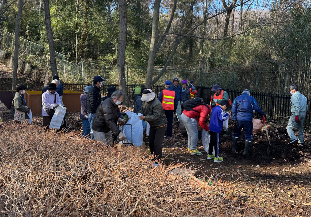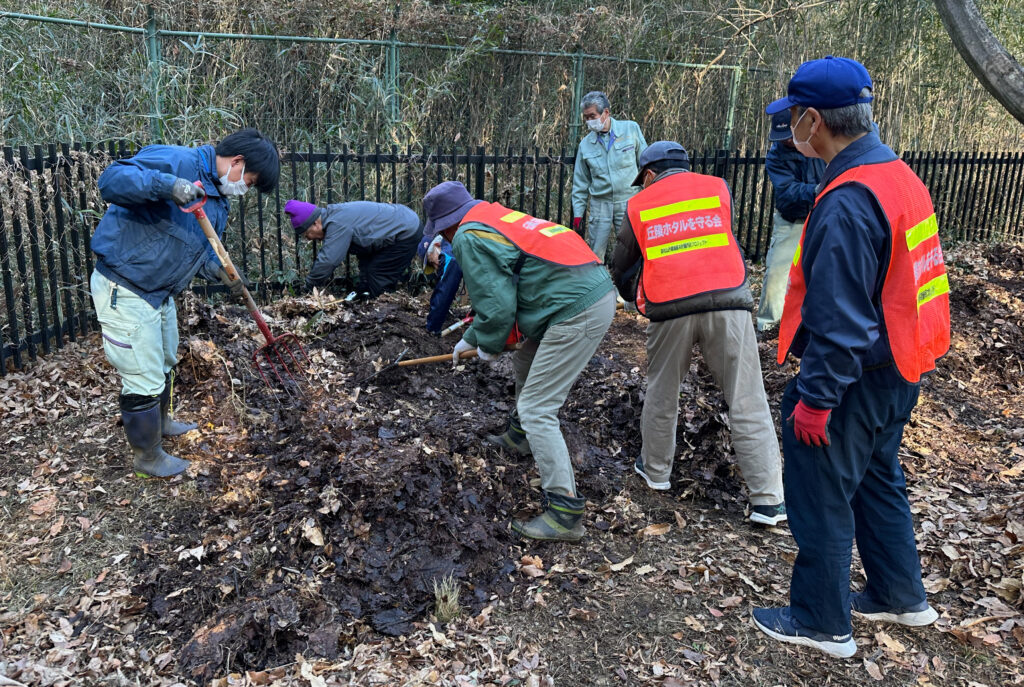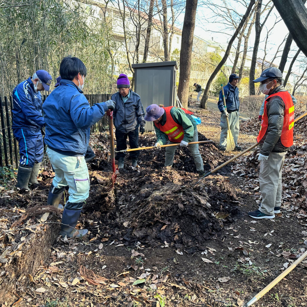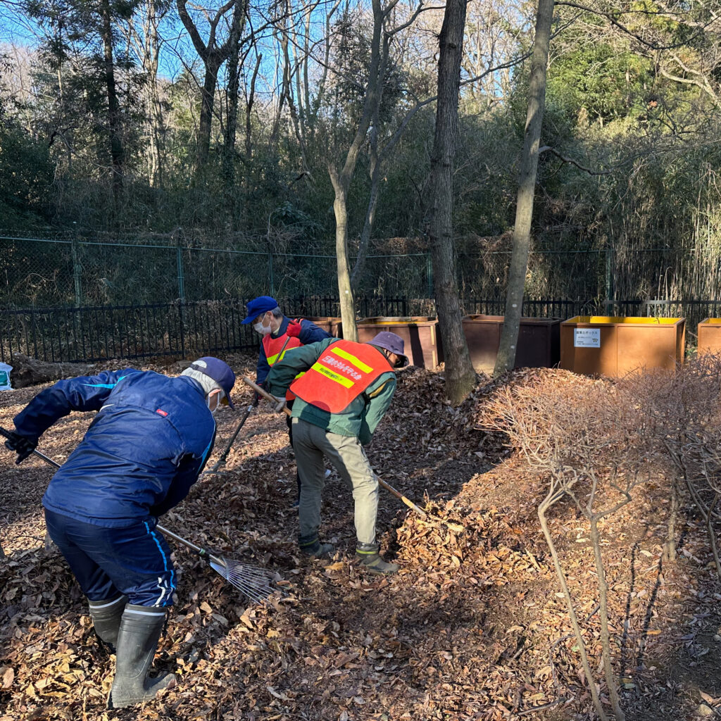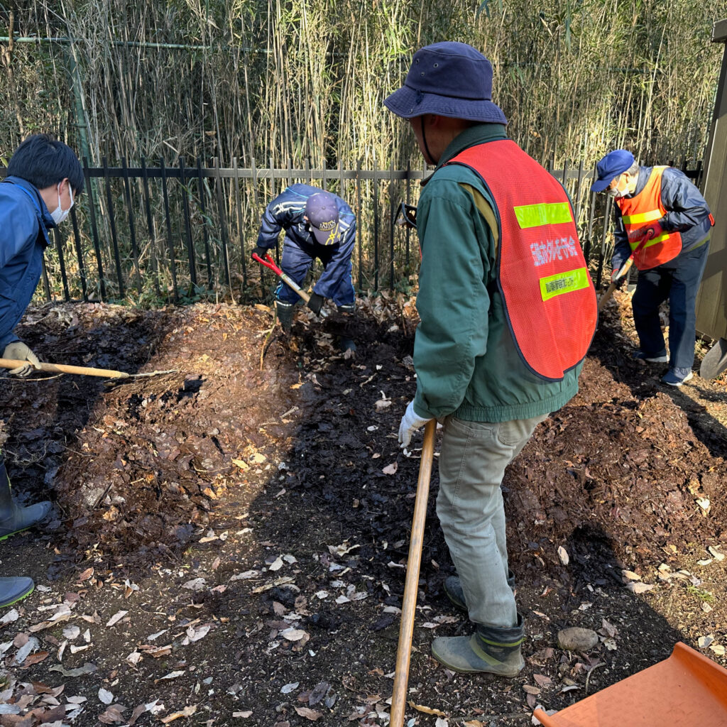 綺麗に落葉が片付いたところで、次は「落葉掻き」で投入作業が続く。