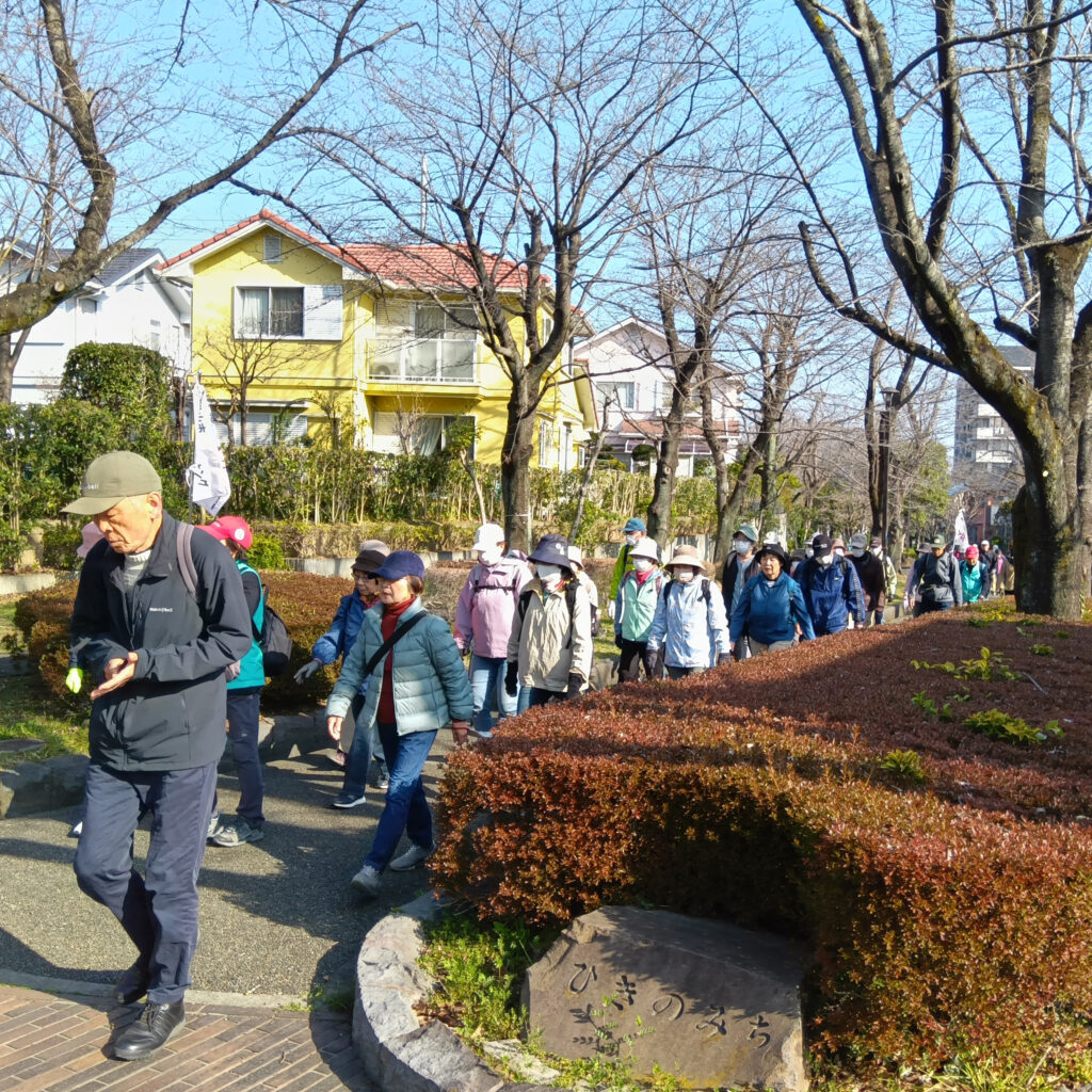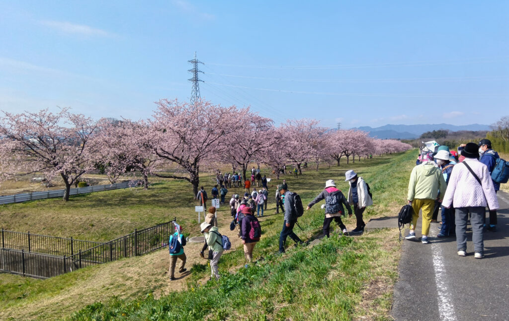 【月例市民ウォーキング】にっさい大寒桜コース 2026年3月17日 最終更新日時 : 2026年3月17日 THR 暖かく、4月並みの天候の中、NHKニュースにもなったサクラの名所への観桜ウォーキングが行われた。参加者65名。行程9km、端から端までサクラ見物をしたら11km。